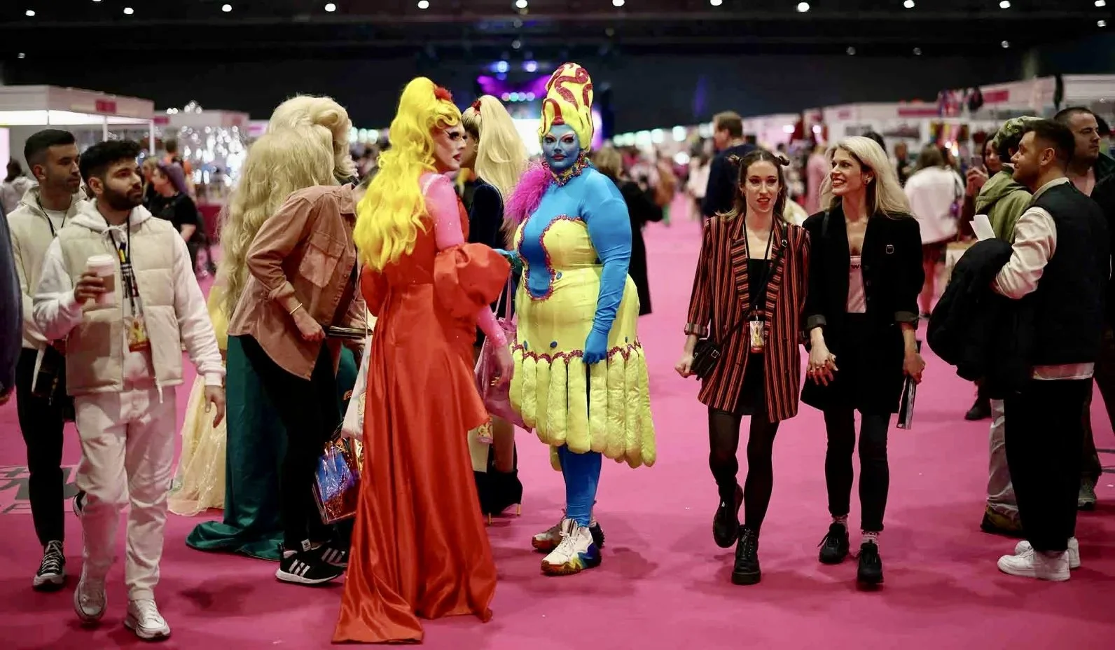 People in drag clothing attend RuPaul's DragCon UK at the Excel Centre in London, January 7, 2023. (Henry Nicholls/Reuters)