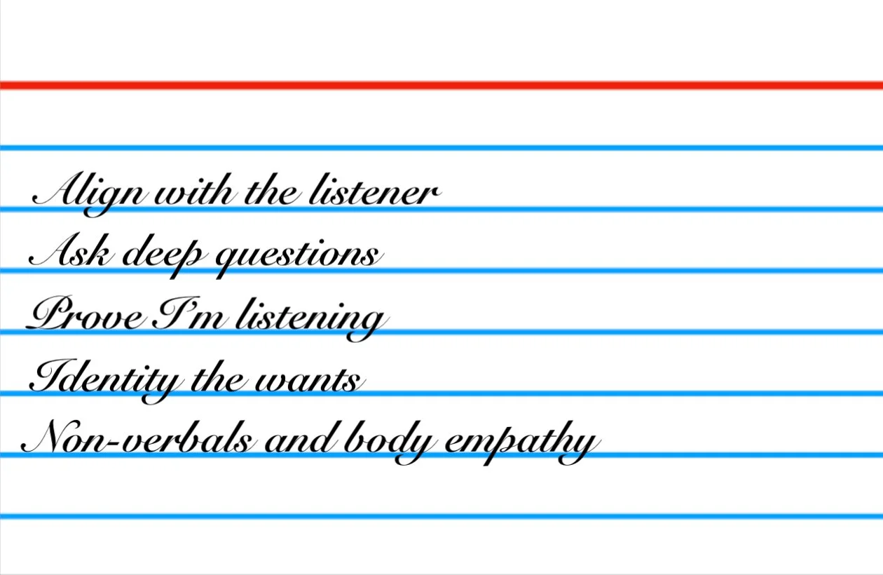 1. Create a note or card that you can glance at inconspicuously before or during a conversation to remind you of the five skills.
